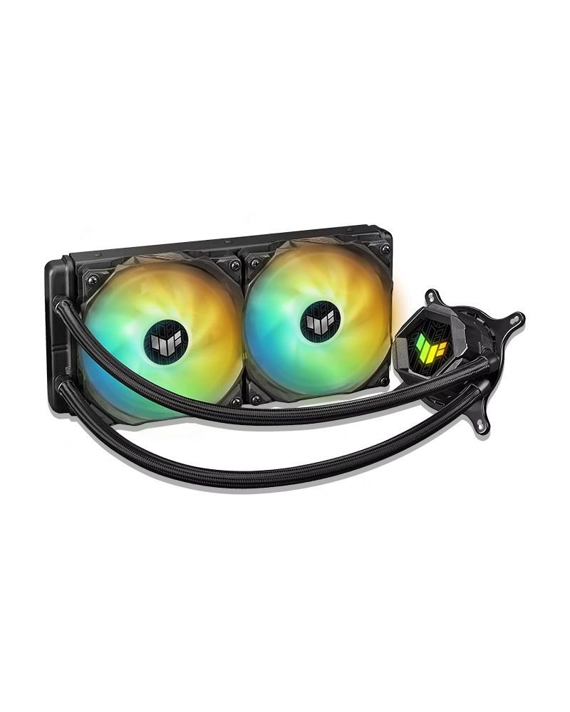 TUF Gaming LC 240 ARGB all-in-one liquid CPU cooler with Aura Sync and dual TUF Gaming 120 mm ARGB radiator fans