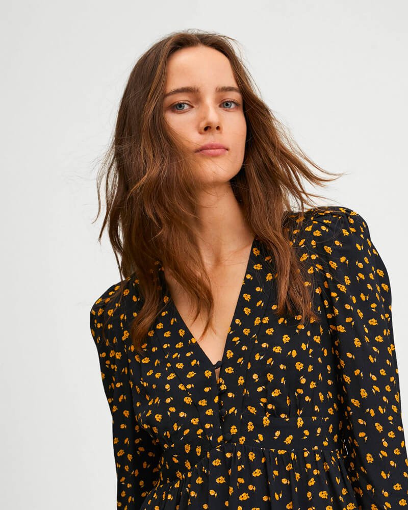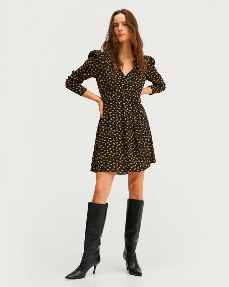 Printed dress with balloon sleeves (Demo)
